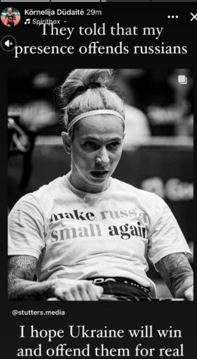 "Вони сказали, що моя участь ображає росіян, – написала чемпіонка Литви в соцмережах. – Сподіваюся, що Україна переможе і по-справжньому їх образить".