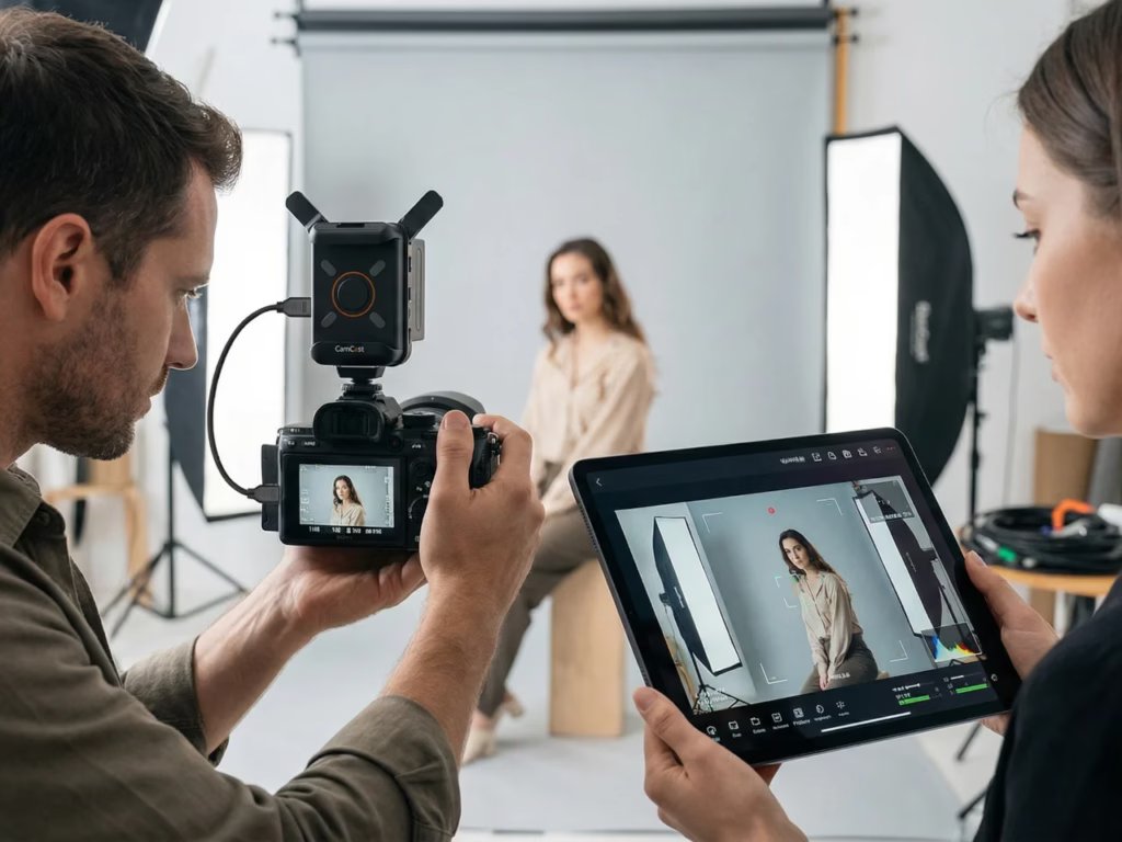 Компанія EZCast представила пристрій CamCast CT-1 — компактний бездротовий передавач відеосигналу, призначений для підключення камер до мобільних пристроїв. Передавач встановлюється на камеру через роз’єм HDMI і транслює відеопотік у роздільній здатності 1080p зі швидкістю 60 кадрів на секунду через Wi-Fi на частоті 5 ГГц. Одночасно сигнал можуть приймати до чотирьох пристроїв на iOS або Android.