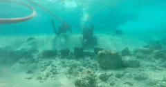 Під керівництвом Ассафа Ясура-Ландау, керівника Інституту морських досліджень імені Леона Реканаті Хайфського університету, та Роя Нікельсберга, доктора філософії. Кандидат Хайфського університету, міжнародна команда провела розкопки на місці, використовуючи поєднання днопоглиблення та відбору проб, а також фотограмметрії та 3D-моделювання. Члени команди знайшли черепки кераміки або «черепки»; кам’яні знаряддя, включаючи церемоніальну зброю та гирі для рибальських сіток; залишки тварин і рослин; та архітектури.