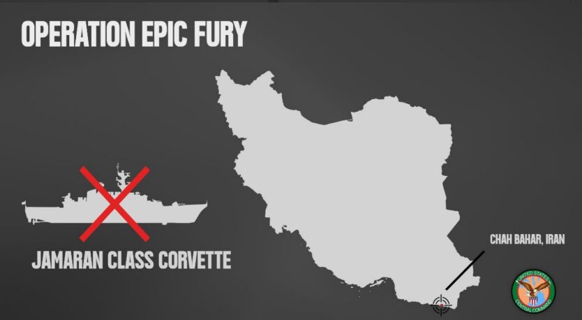 За даними американських військових, іранський корвет був знищений біля причалу Чах-Бахар. Це стало частиною спільної зі Збройними силами Ізраїлю операції.