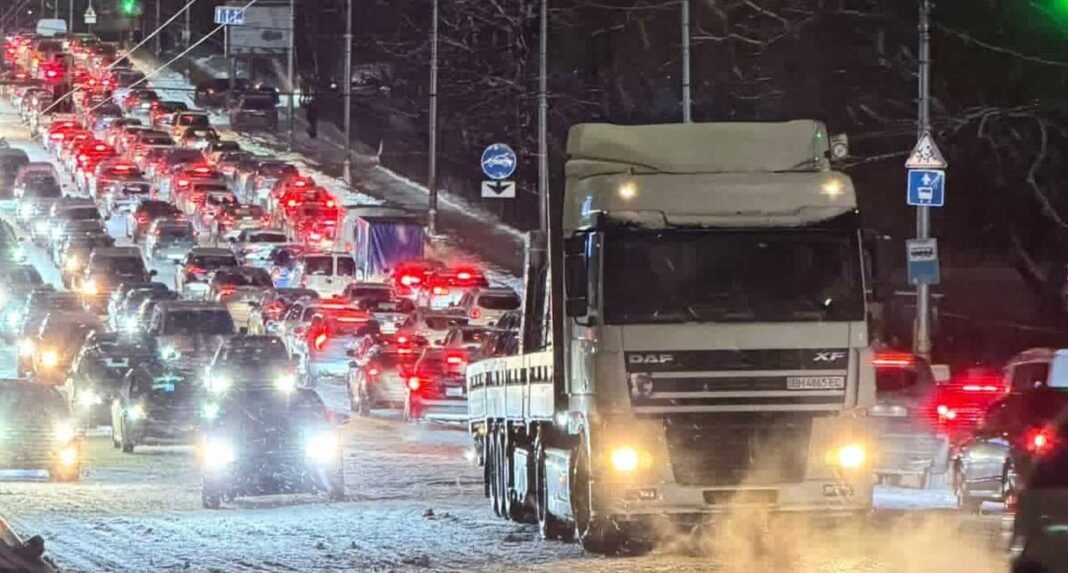 У Києві стався транспортний колапс через снігопади та ожеледицю | Фото: Соцмережі